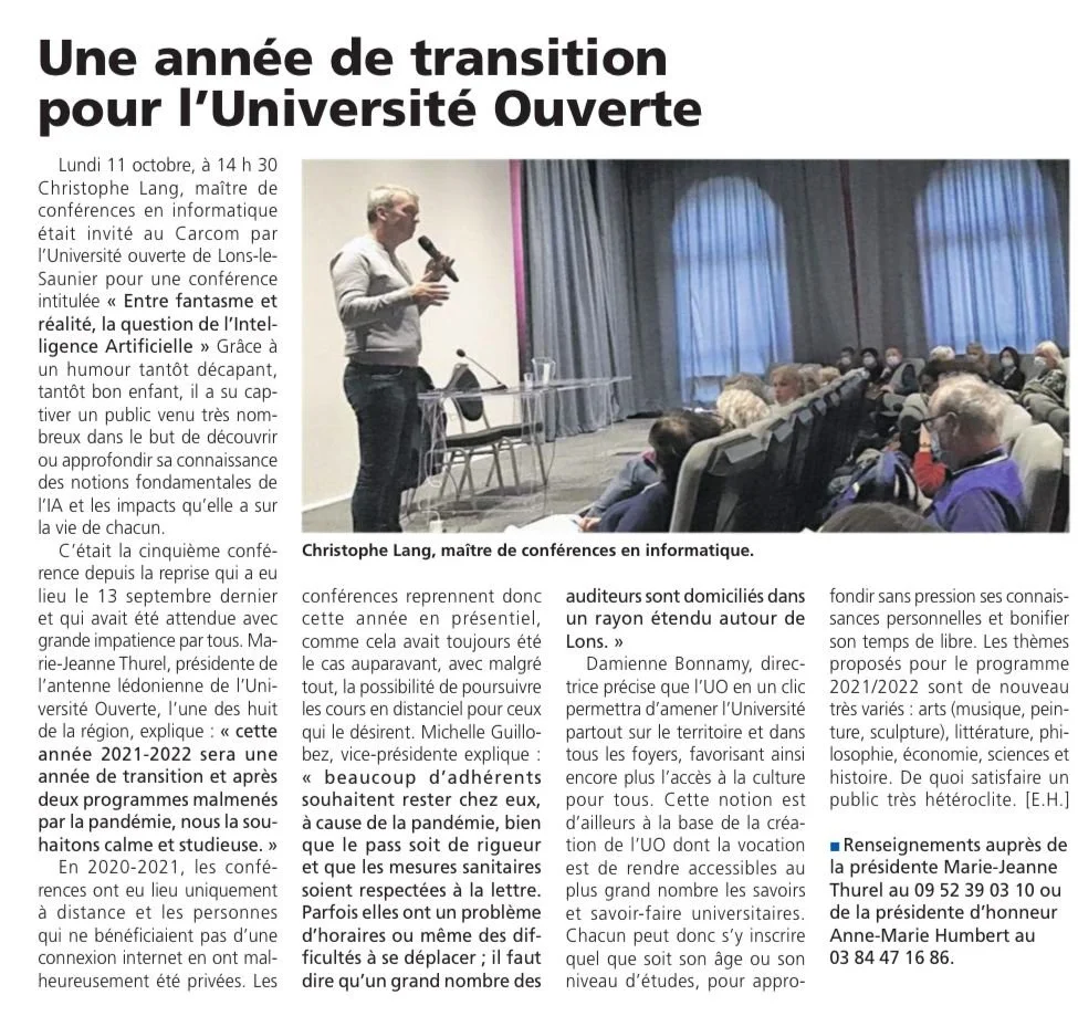 Voici l’article que j’ai rédigé récemment pour Voix du Jura sur l’Université Ouverte.