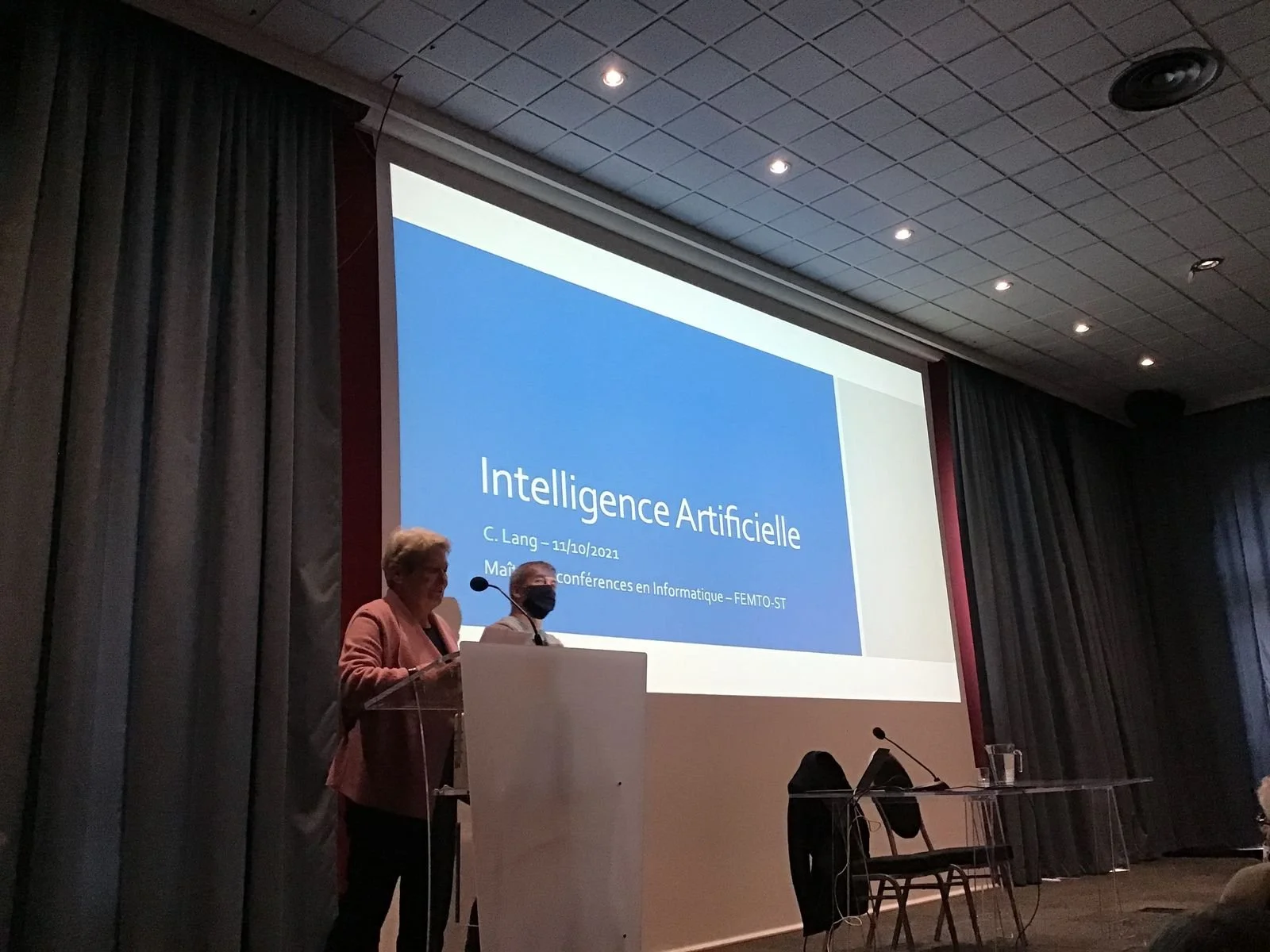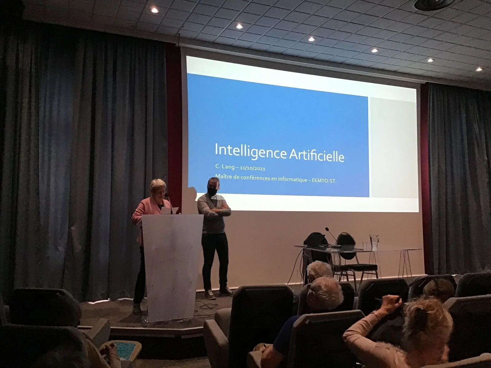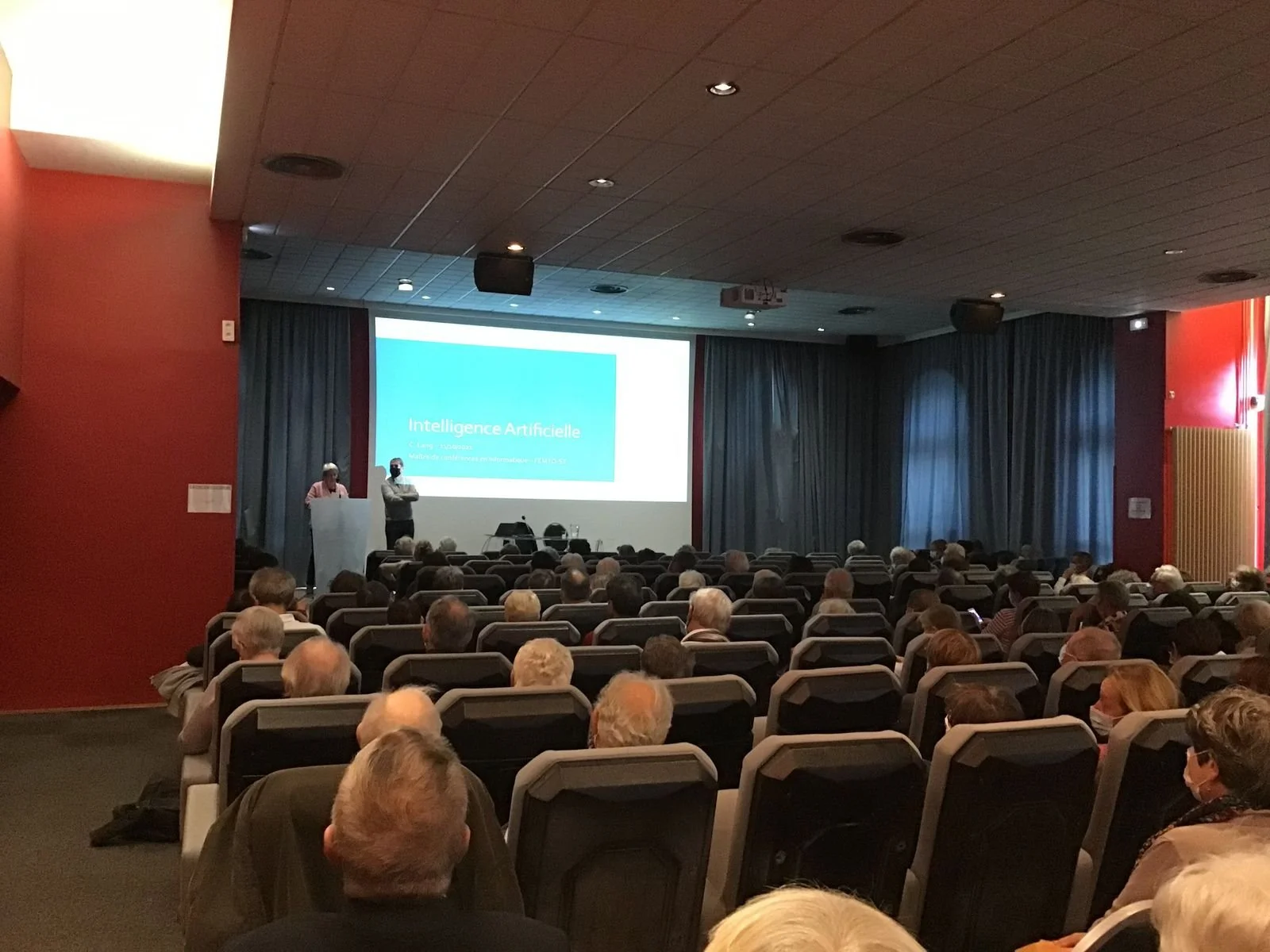 Je joins plusieurs photos que j’ai prises durant la conférence donnée par Christophe Lang: « Entre fantasme et réalité, la question de l’Intelligence Artificielle »