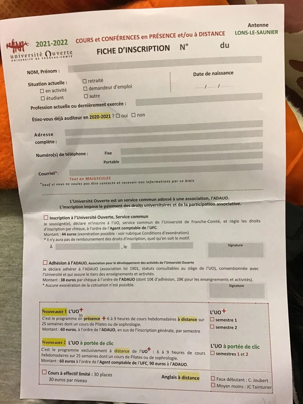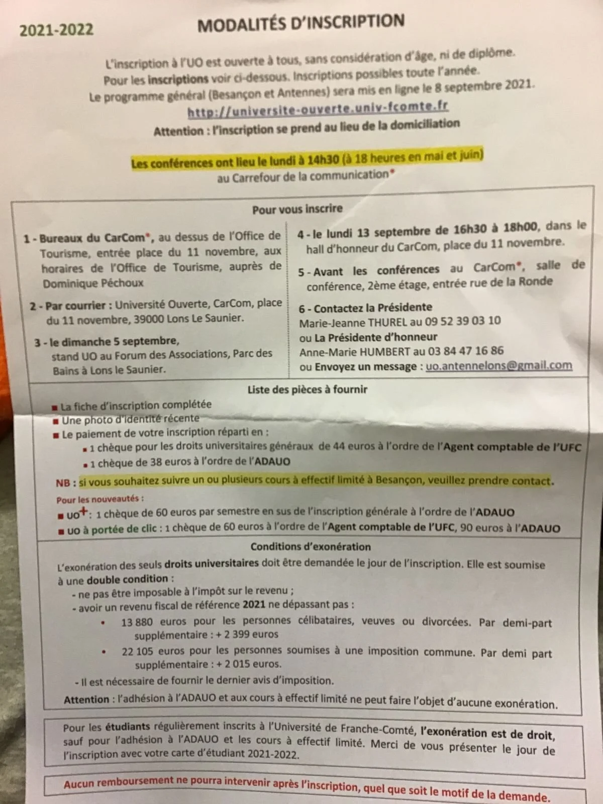 Lons-le-Saunier: Université Ouverte. Renseignements généraux.